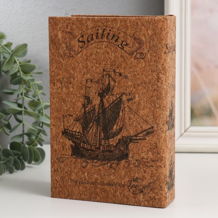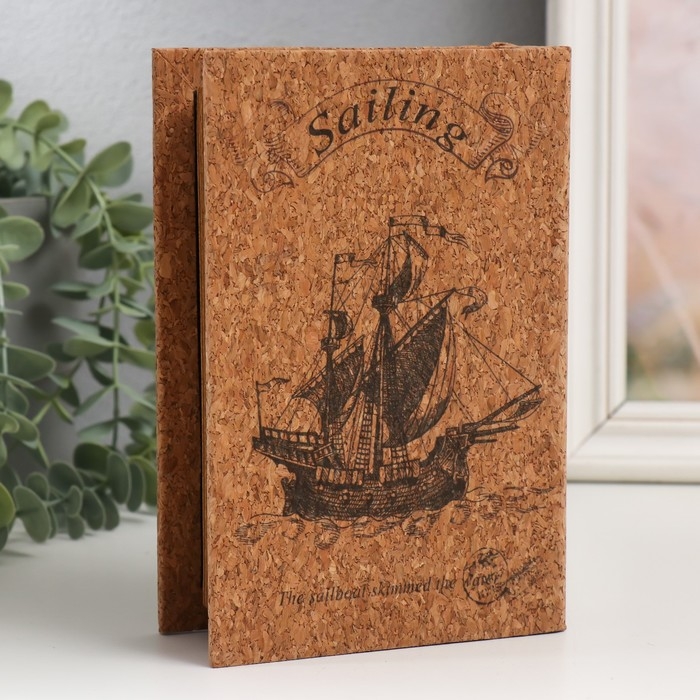 Шкатулка-книга дерево кожзам под пробку "Корабль" 4х12х18 см