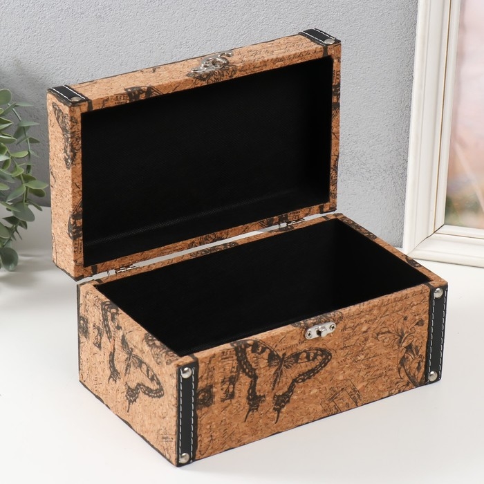 Шкатулка дерево кожзам под пробку "Бабочки и старинное письмо" 24х14х12 см