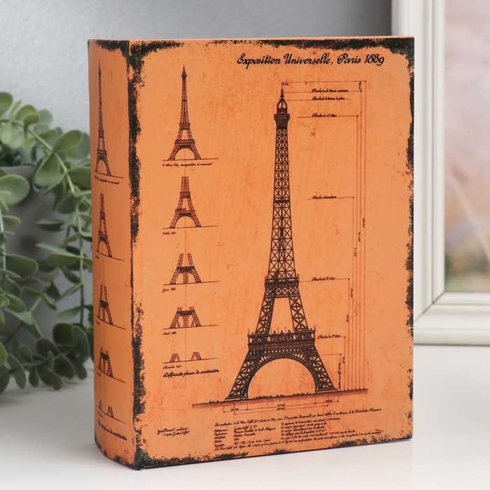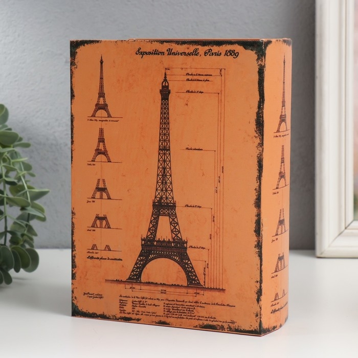 Шкатулка-книга дерево, кожзам "Чертёж Эйфелевой башни" 6х15х20 см