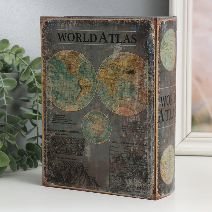 Шкатулка-книга дерево, кожзам "Атлас мира" 6х15х20 см
