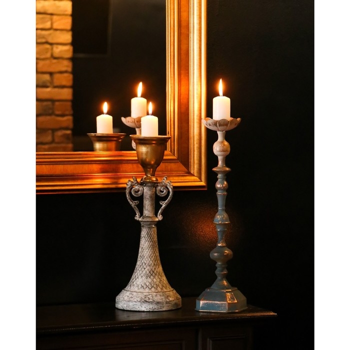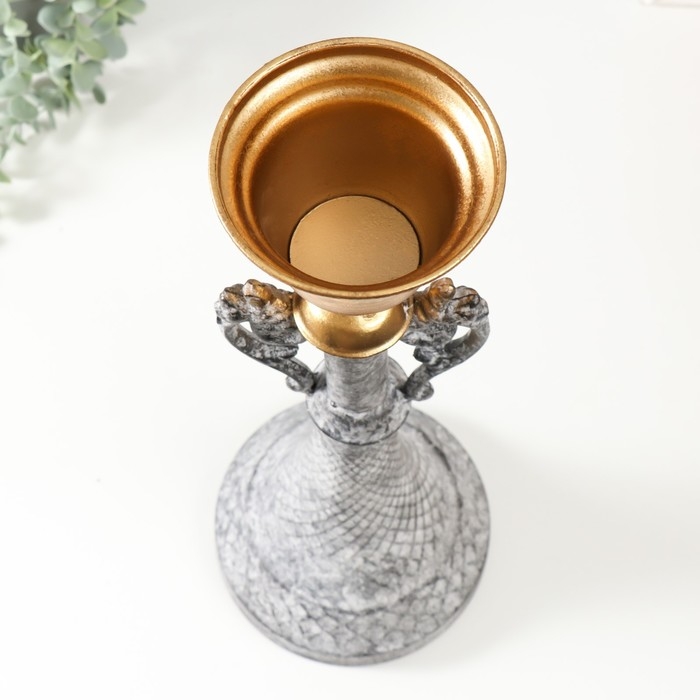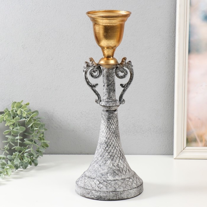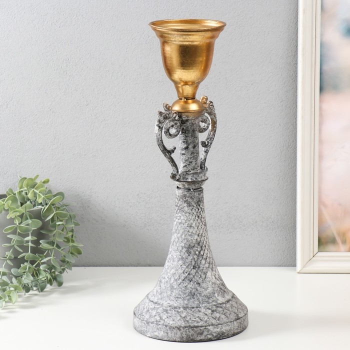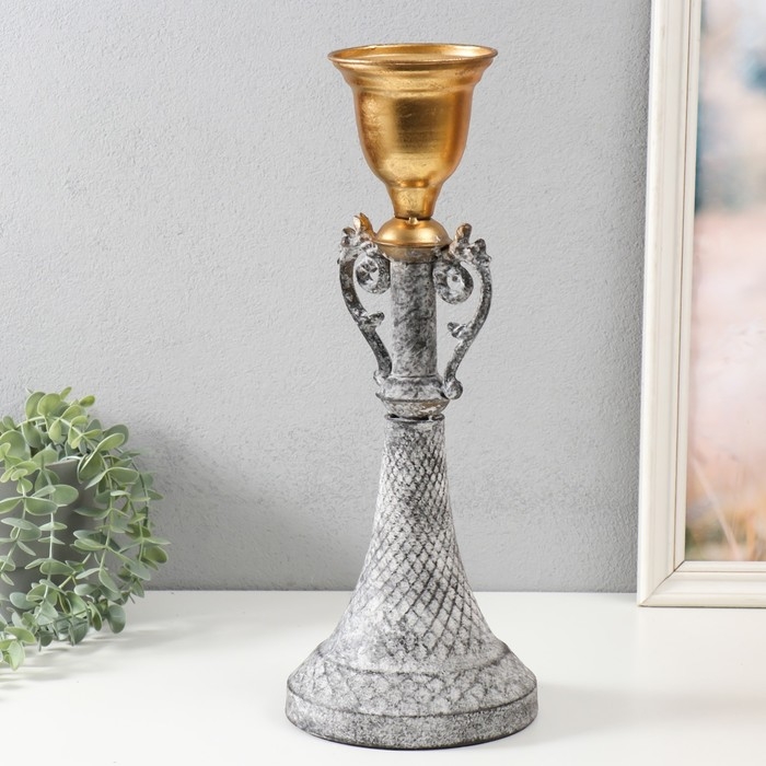 Подсвечник металл на 1 свечу "Лучиано" серый с золотом 16х16х42 см