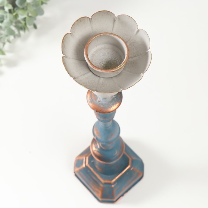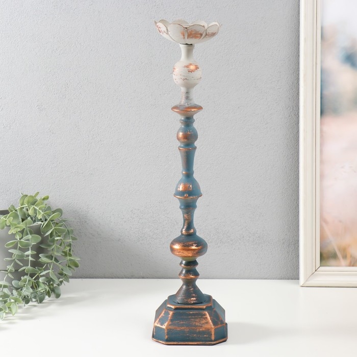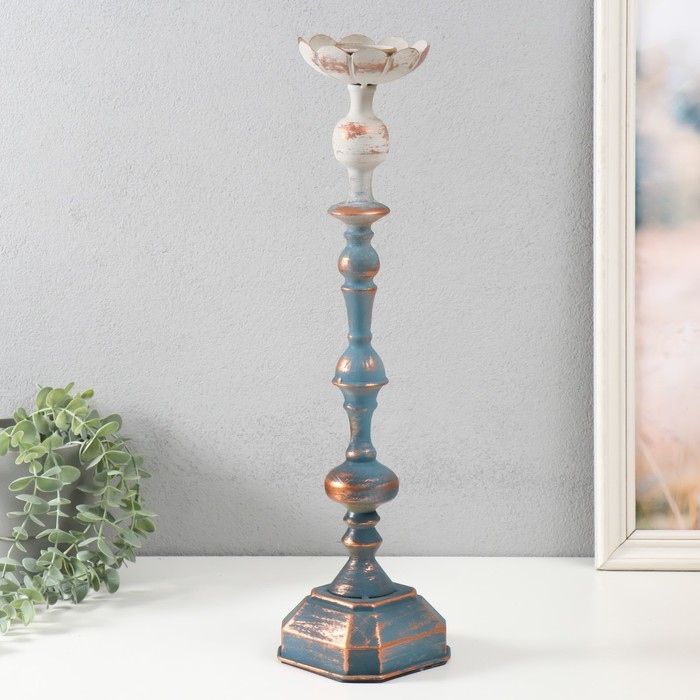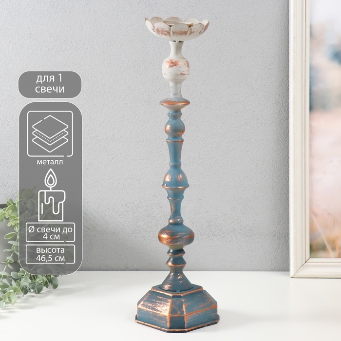 Подсвечник металл на 1 свечу "Моника" состаренный сине-серебристый 11х11х46,5 см