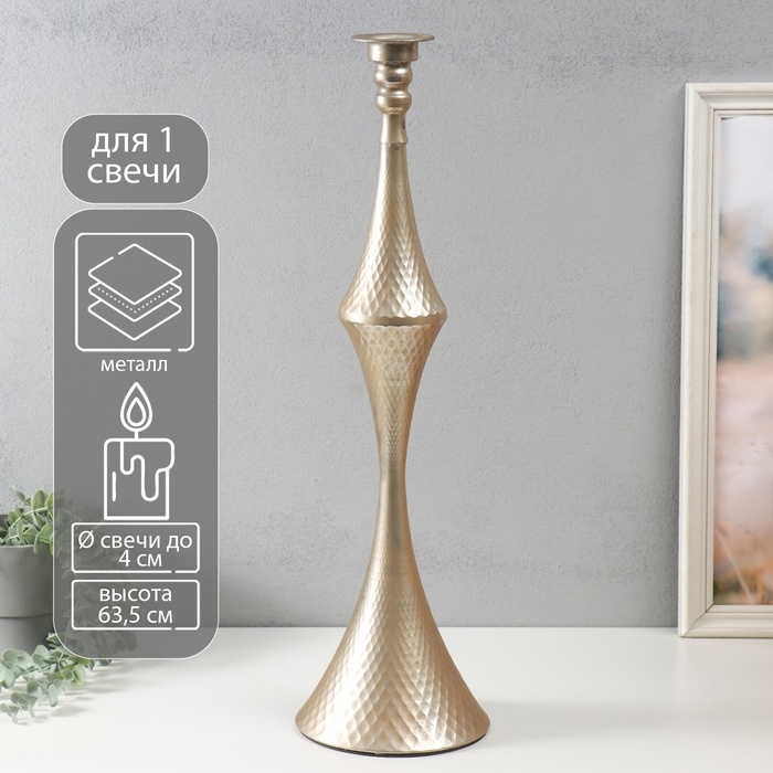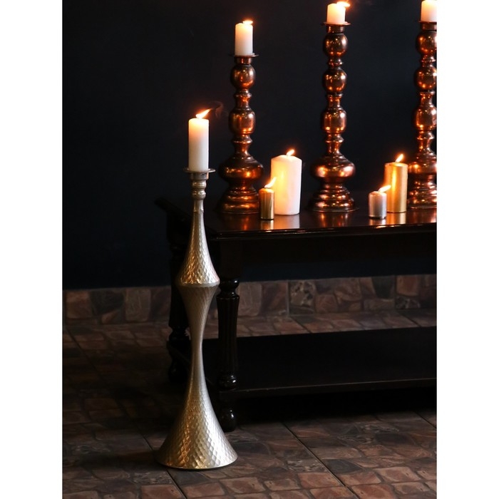 Подсвечник металл на 1 свечу "Рокко" серебро 17,5х17,5х63,5 см