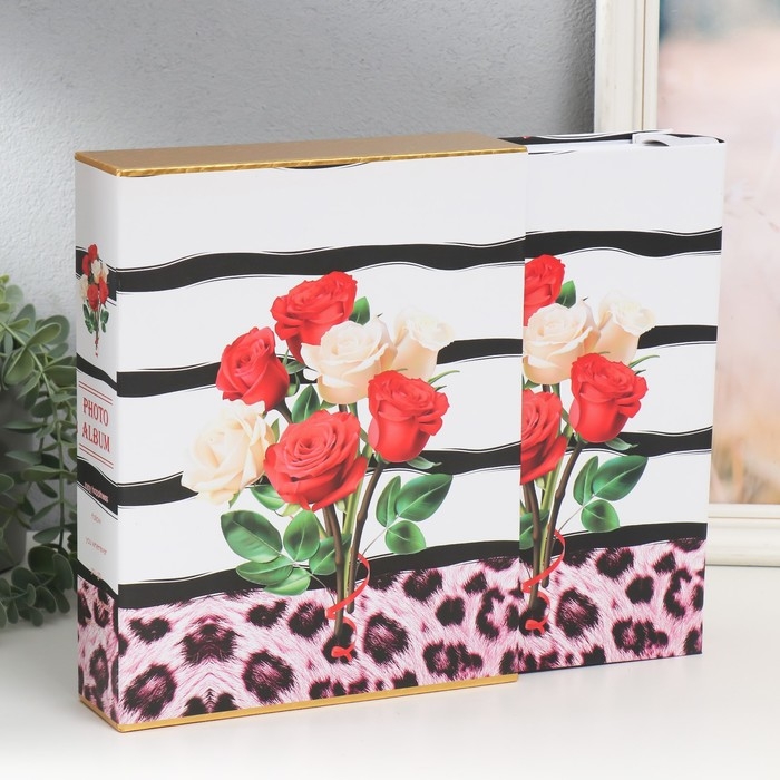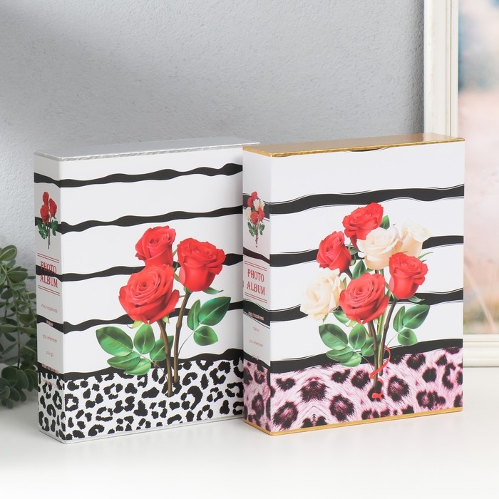 Фотоальбом на 200 фото 10х15 см "Розы и животный принт" МИКС 26х20,5х5,6 см