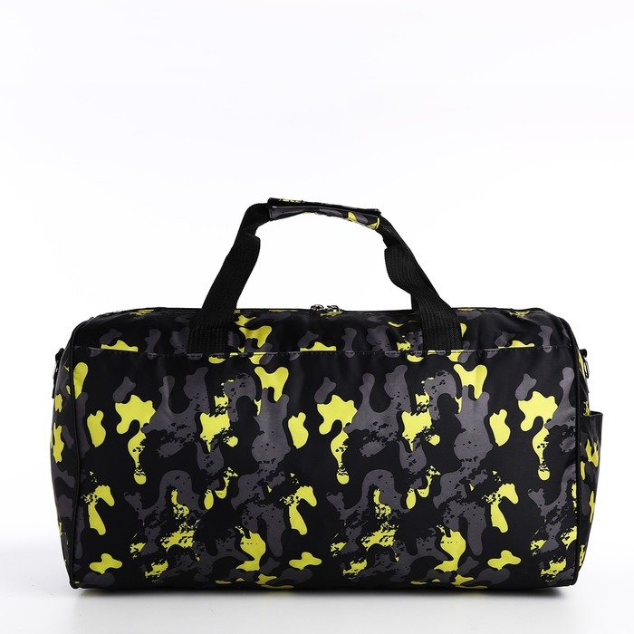 Сумка дорожная на молнии, наружный карман, длинный ремень, цвет жёлтый/чёрный