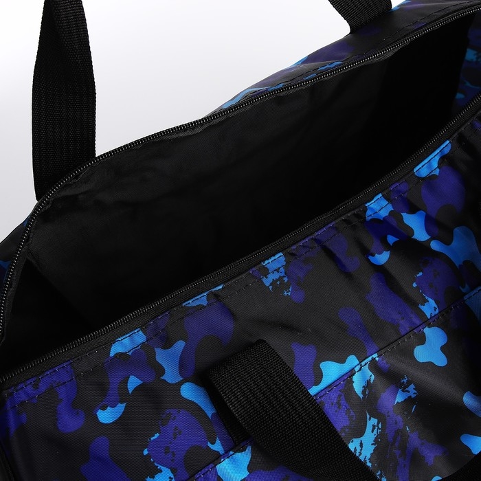 Сумка дорожная на молнии, наружный карман, длинный ремень, цвет синий/чёрный