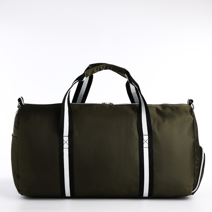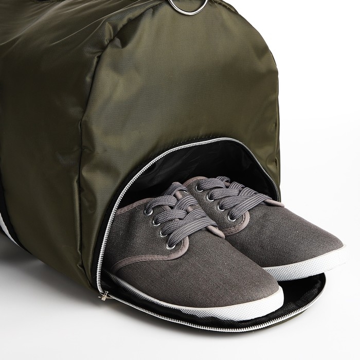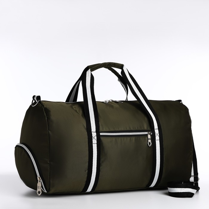 Сумка дорожная на молнии, отдел для обуви, наружный карман, длинный ремень, цвет хаки