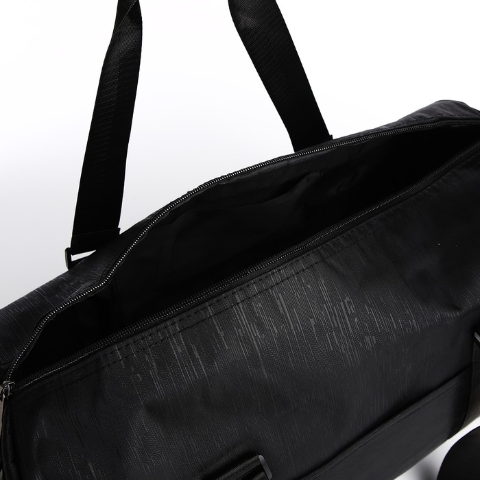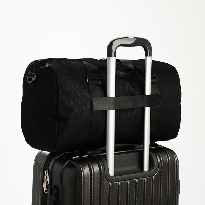 Сумка дорожная на молнии, наружный карман, держатель для чемодана, длинный ремень, цвет чёрный