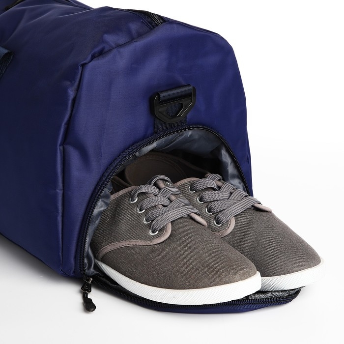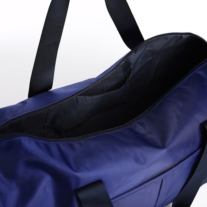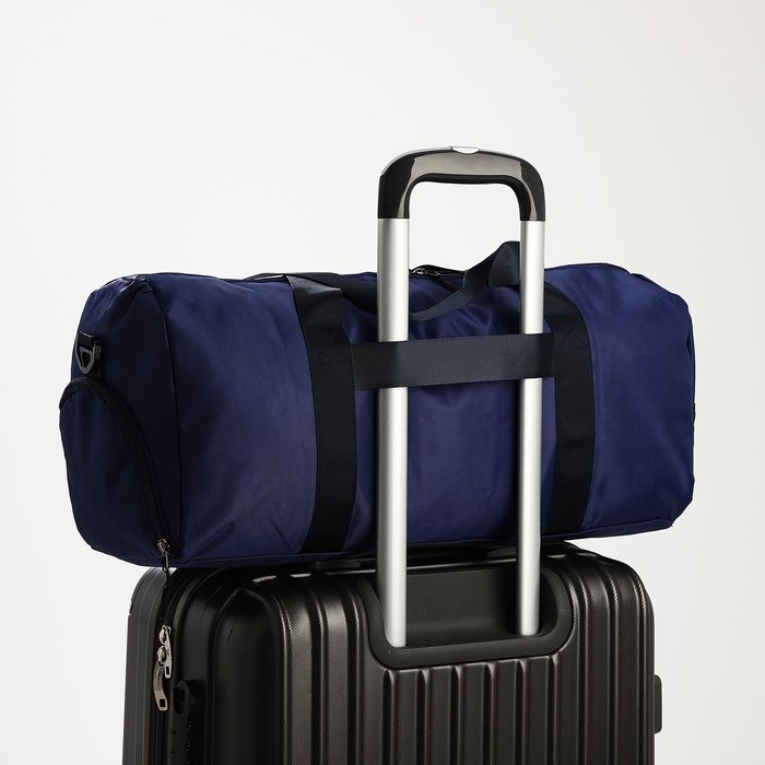 Сумка дорожная на молнии, отдел для обуви, держатель для чемодана, наружный карман, длинный ремень, цвет синий