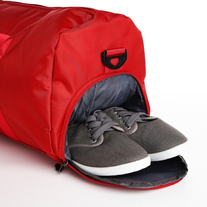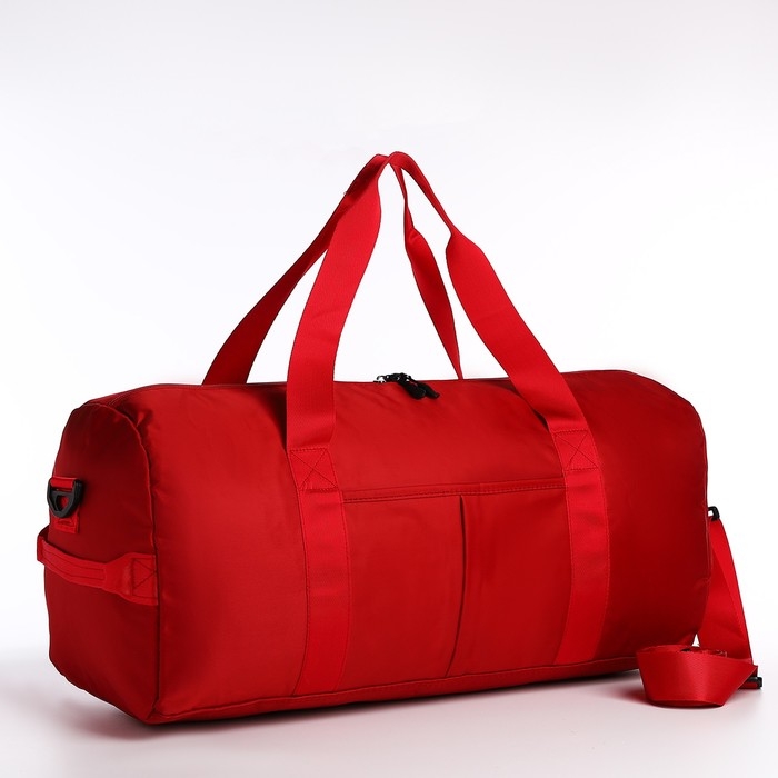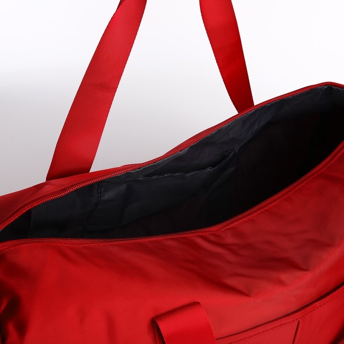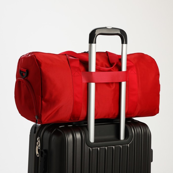 Сумка дорожная на молнии, отдел для обуви, держатель для чемодана, наружный карман, длинный ремень, цвет красный