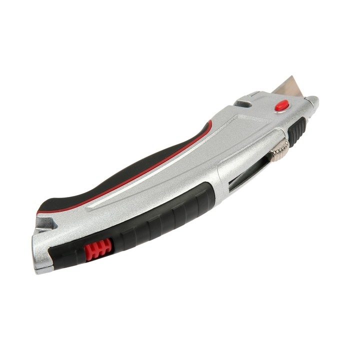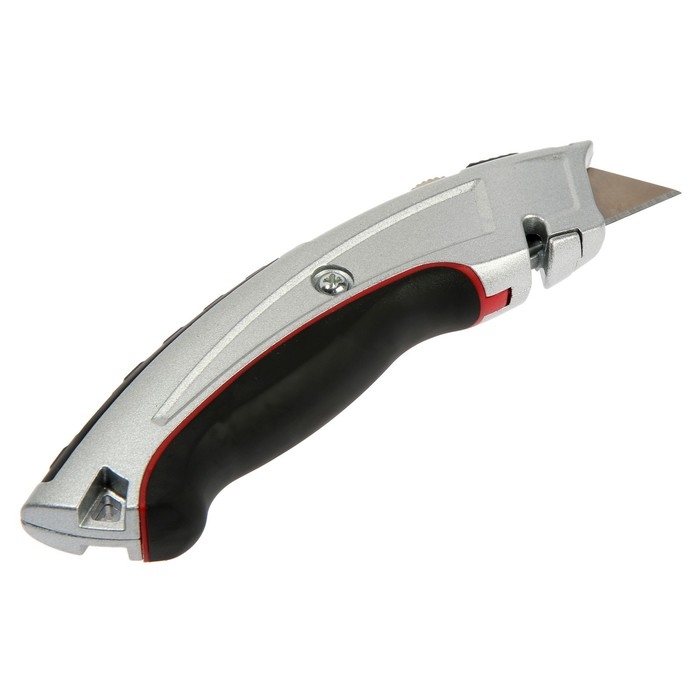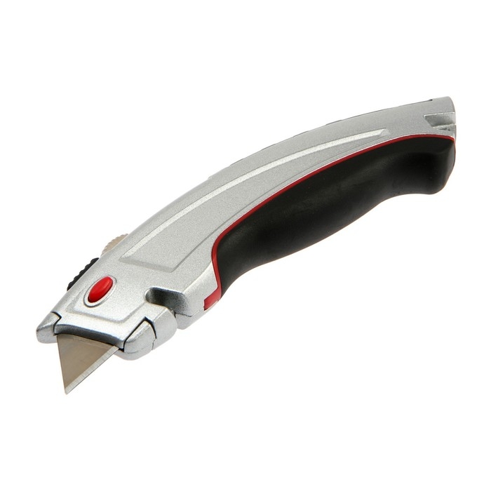 Нож трапециевидный ТУНДРА, металлический корпус, усиленный, обрезиненный, автовозврат, 19 мм 94596