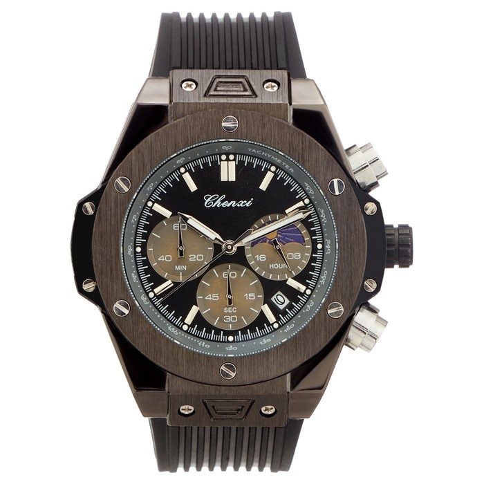 Часы наручные мужские, календарь, хронограф, d-4.2 см, ремешок l-24 см, светящиеся, 3 ATM