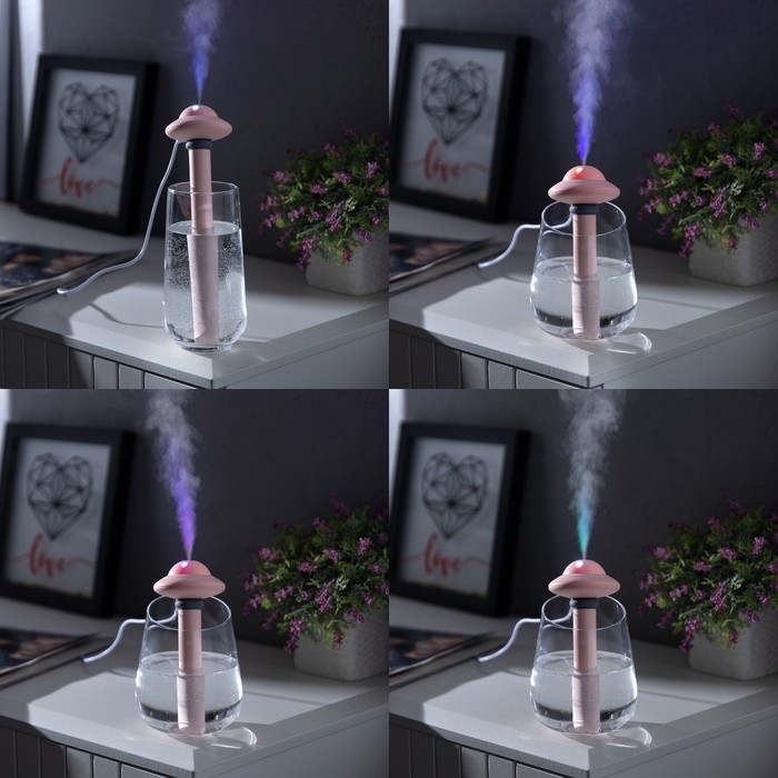 Увлажнитель воздуха "НЛО" HM-21, ультразвуковой, погружной, с подсветкой, USB, розовый