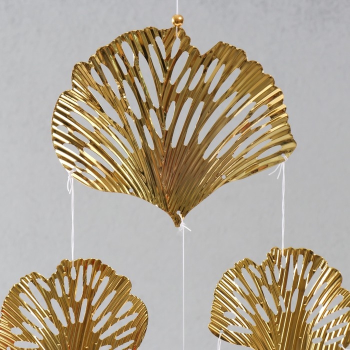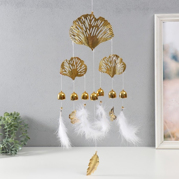 Музыка ветра металл, пластик "Золотые листья и бабочки" 7 колокольчиков 62х24х2,7 см