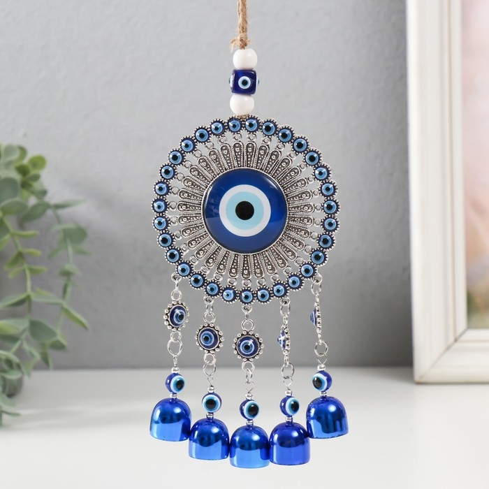 Музыка ветра металл от сглаза "Глаза с 5 колокольчиками" 31х9,2х2 см