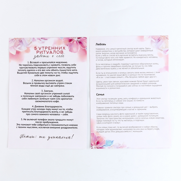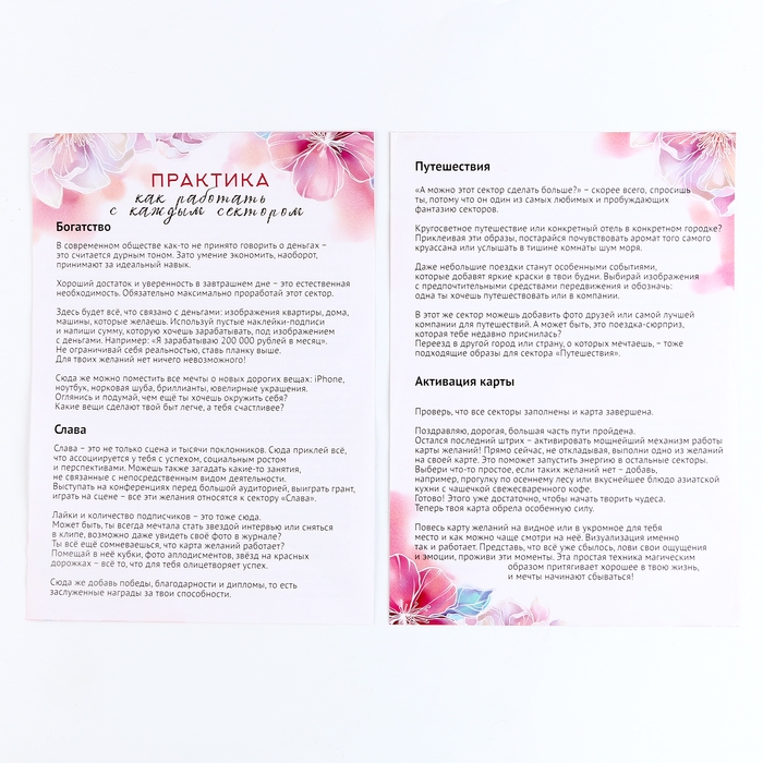 Поговорив честно с самим собой, точно решив, что хочешь больше всего на свете в разных сферах - фиксируй это на нашей карте желаний. И приклеивай соответствующую картинку, там самым визуализируй свои мысли.