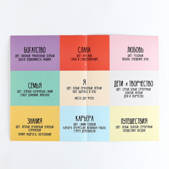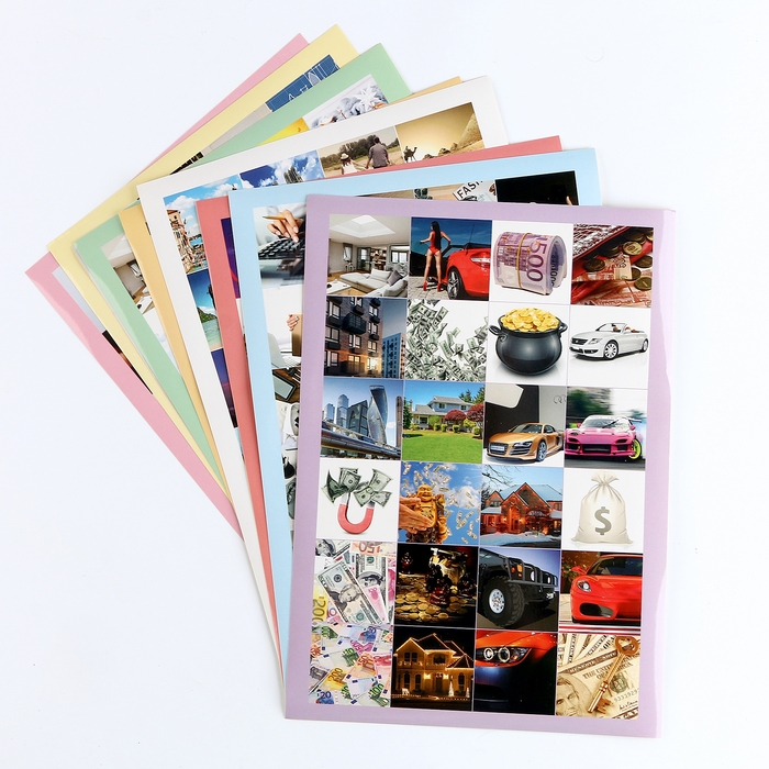 Поговорив честно с самим собой, точно решив, что хочешь больше всего на свете в разных сферах - фиксируй это на нашей карте желаний. И приклеивай соответствующую картинку, там самым визуализируй свои мысли.