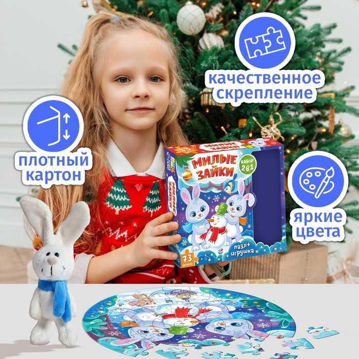 Набор пазлов с игрушкой «Милые зайки», 73 детали