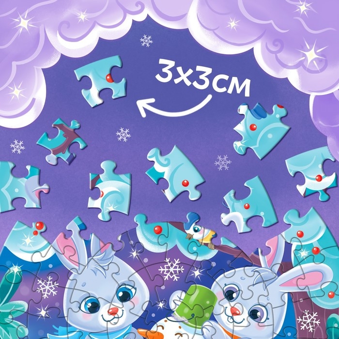 Набор пазлов «Милые зайчики» — то, что нужно для полезного и интересного досуга! Такой подарок поможет ребёнку скрасить ожидание Нового года и весело провести время.