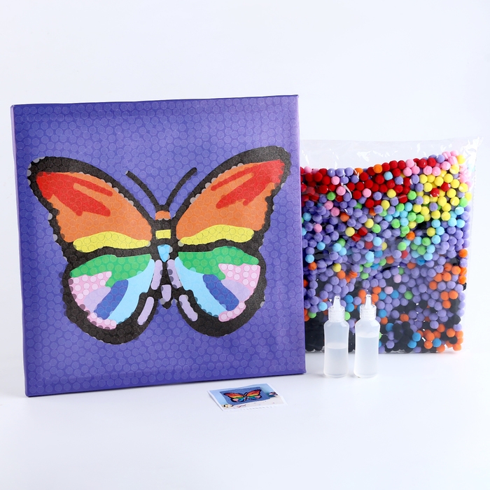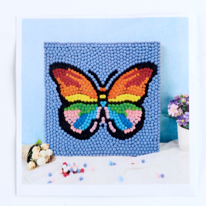 Аппликация помпошками «Бабочка», размер — 30 × 30 см, клей 30 мл