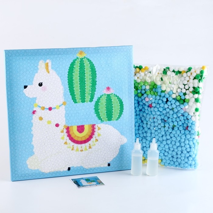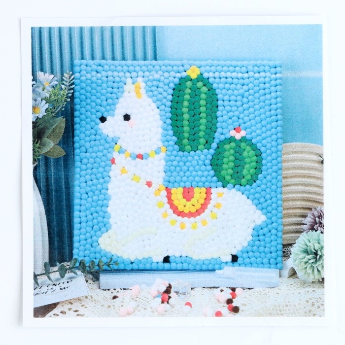 Аппликация помпошками «Лама и кактусы», размер — 30 × 30 см, клей 30 мл