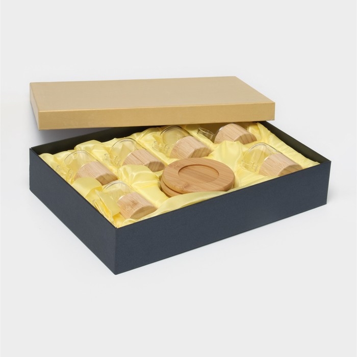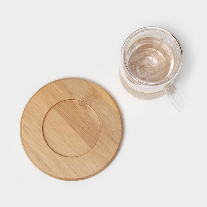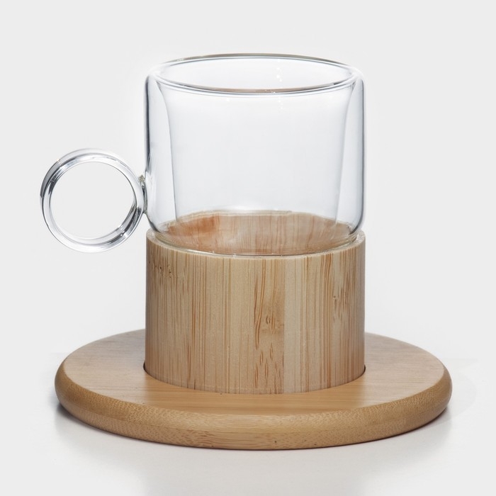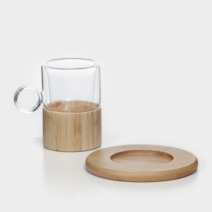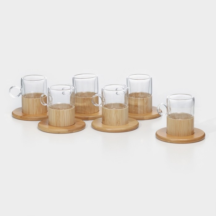 Сервиз чайный из стекла «Мадера», 12 предметов: 6 кружек 100 мл, 6 бамбуковых подставок d=11 см