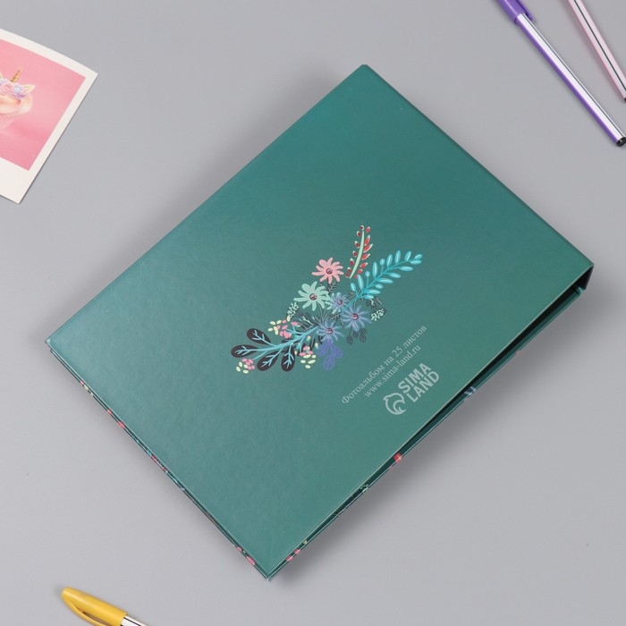 Фотоальбом 25 листов (наклейки+кольца) "Цветочный. Цветы & ты" 19х27х3 см