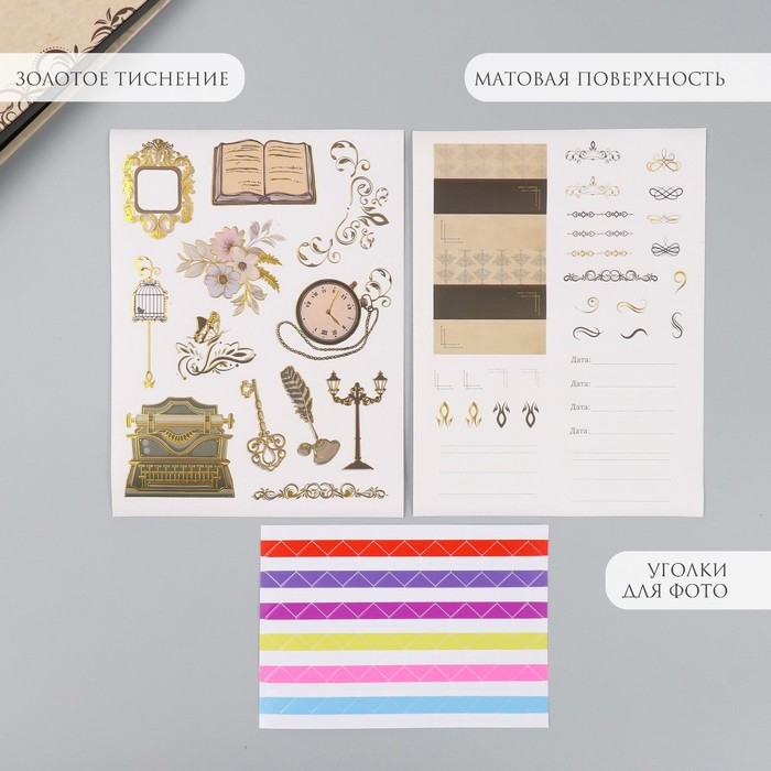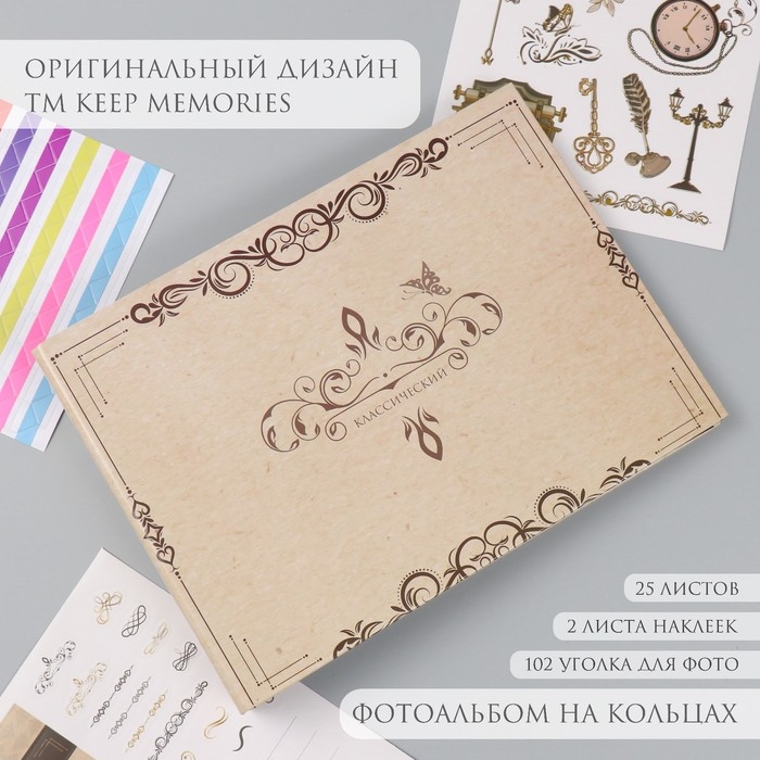 Фотоальбом 25 листов (наклейки+кольца) "Классический" тиснение золото 19х27х3 см