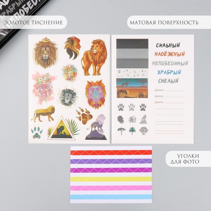 Фотоальбом 25 листов (наклейки+кольца) "Лев" 19х27х3 см