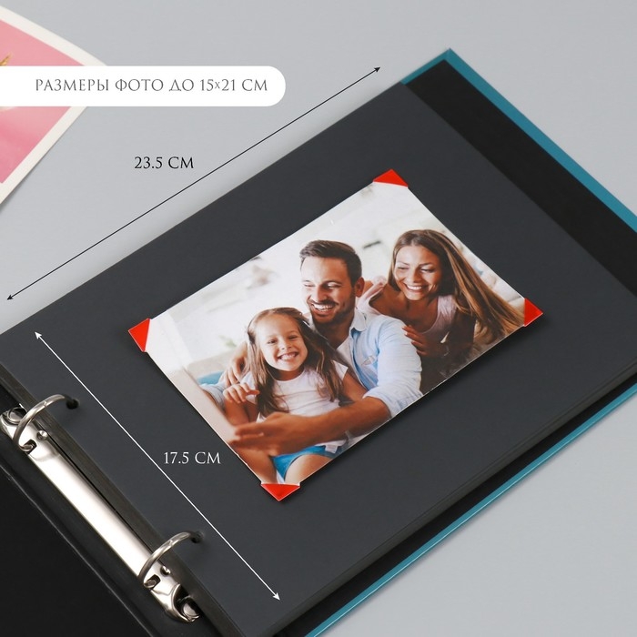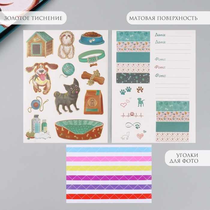 Фотоальбом 25 листов (наклейки+кольца) "Жизнерадостный пёс" 19х27х3 см