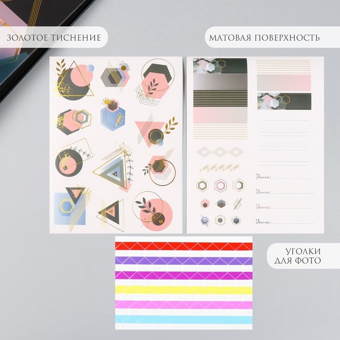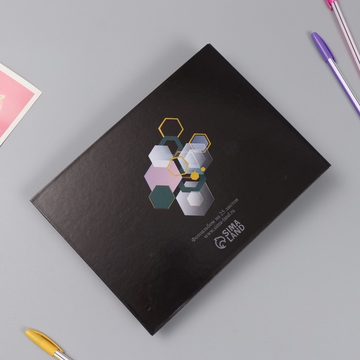 Фотоальбом 25 листов (наклейки+кольца) "Геометрия" тиснение золото 19х27х3 см