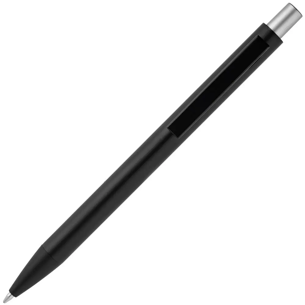 Ручка строгих форм в черном корпусе с цветными деталями.