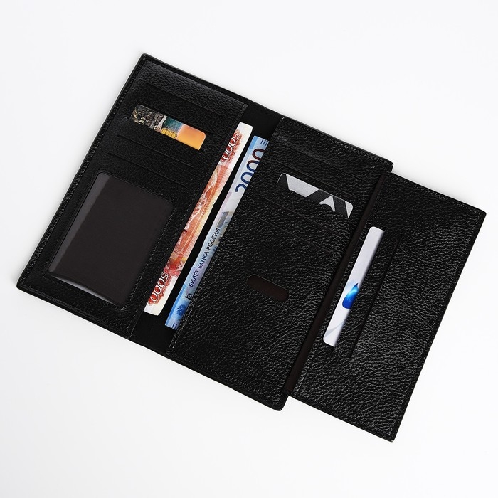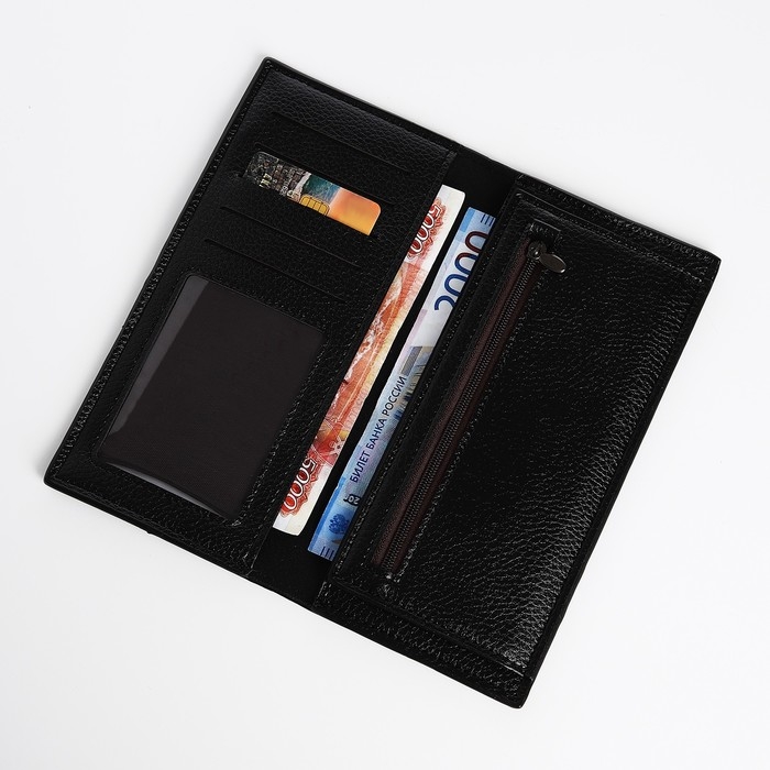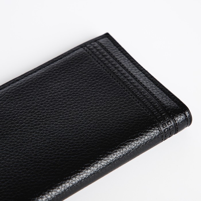Портмоне мужское без застежки, отдел для купюр, для карт, для монет, цвет чёрный
