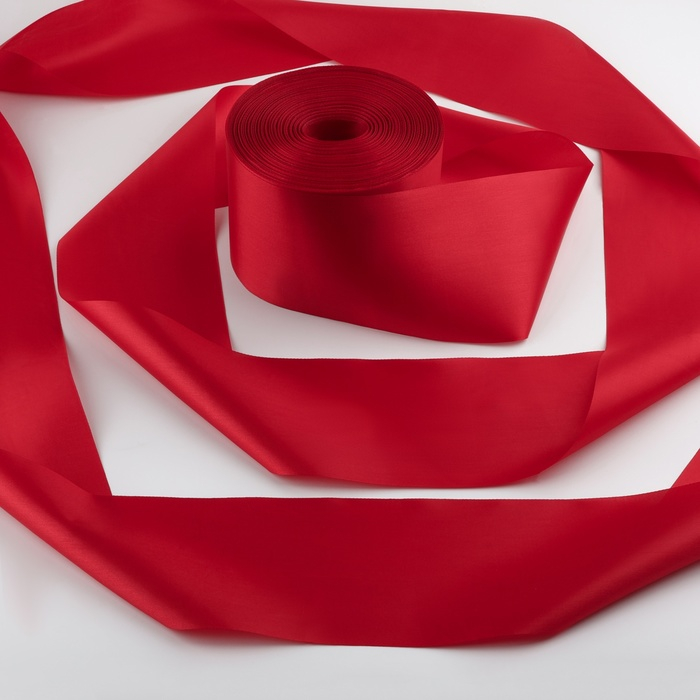 Лента атласная, 100 мм × 100 ± 5 м, цвет красный