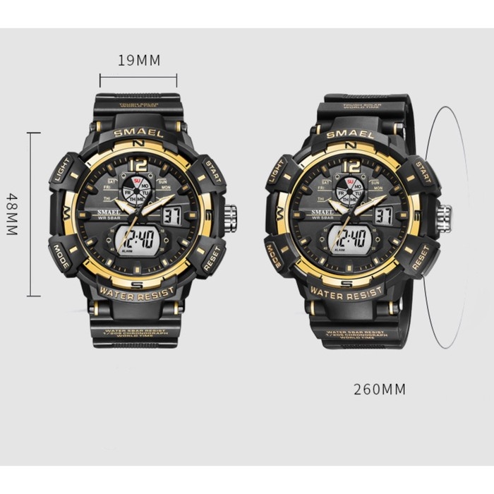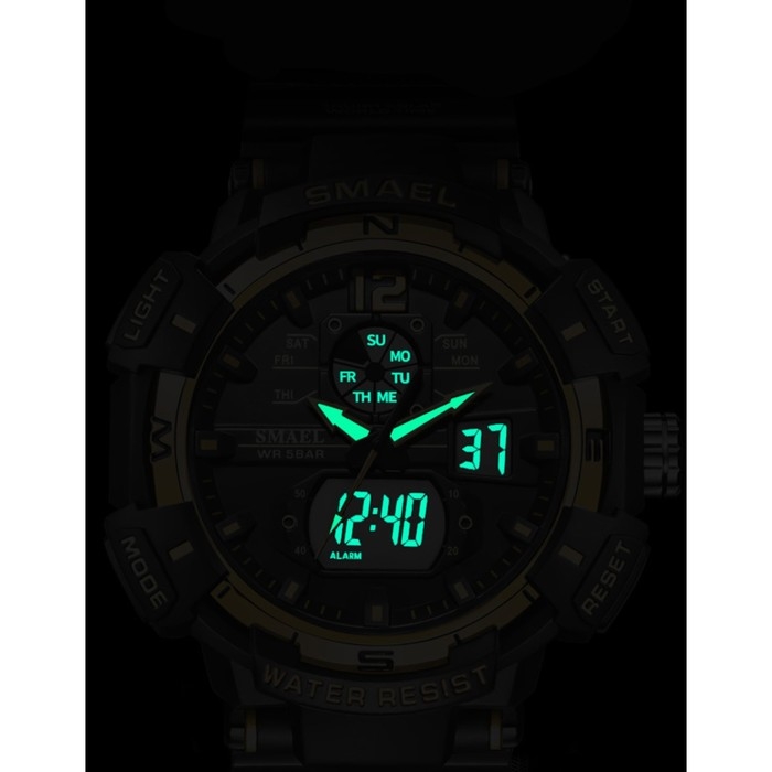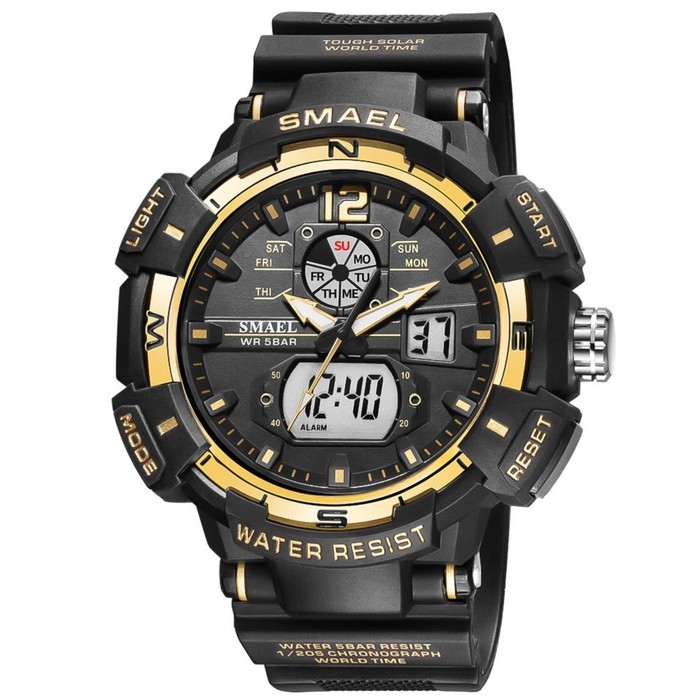 Часы наручные электронные, с будильником, d-5.3 см, ремешок l-26 см, 5 ATM, черные