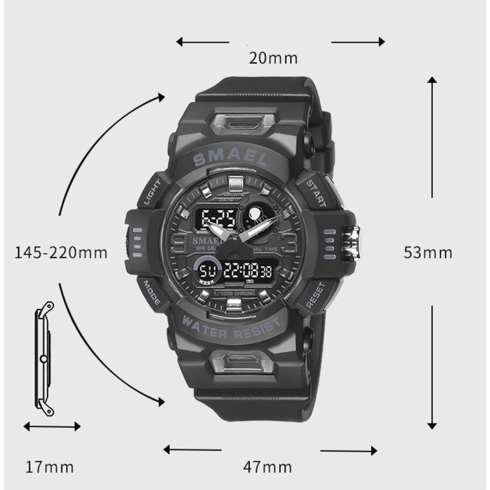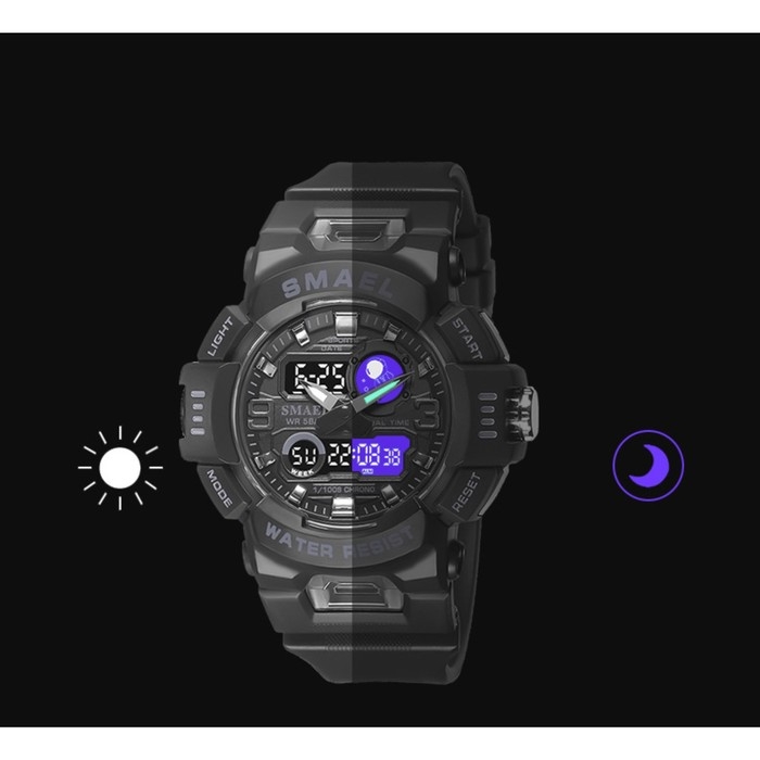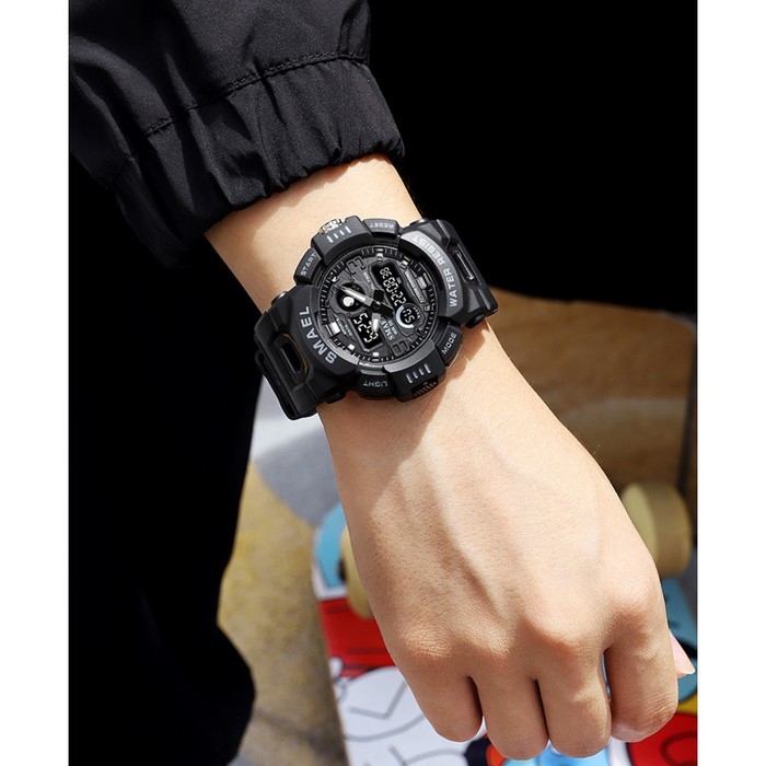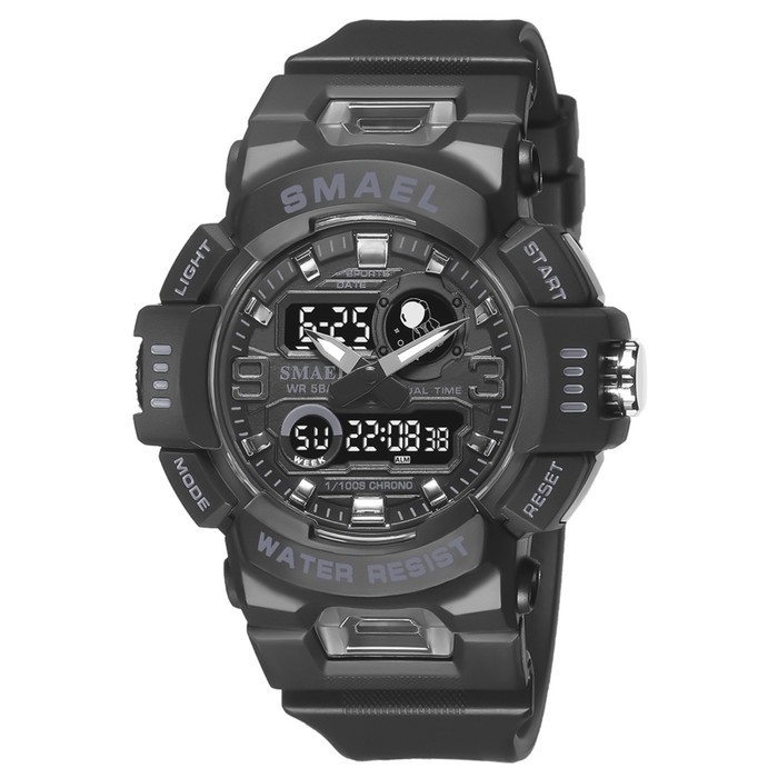 Часы наручные электронные, с будильником, d-5.3 см, ремешок l-27 см, 5 ATM, черные