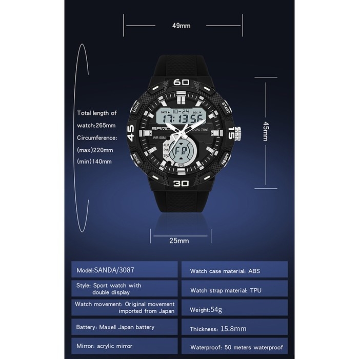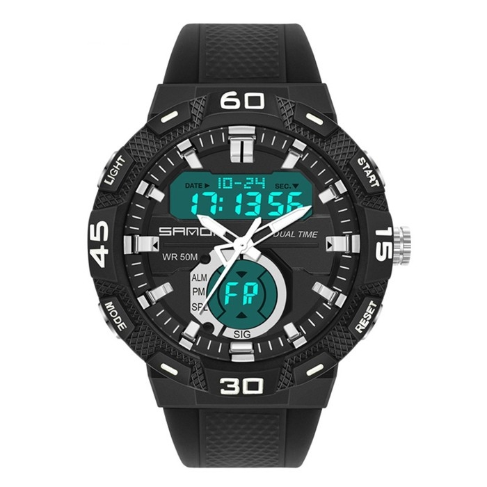 Часы наручные электронные, d-4.9 см, будильник, каледарь, ремешок силикон, черные