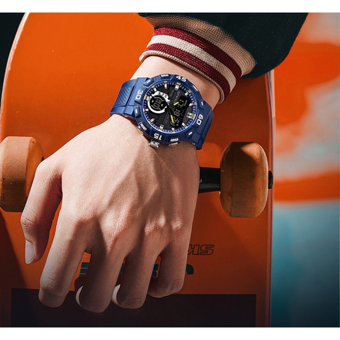 Часы наручные электронные, d-4.9 см, будильник, каледарь, ремешок силикон, синие