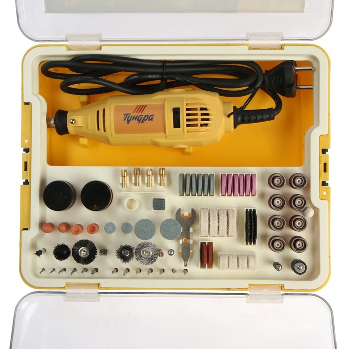Гравер электрический ТУНДРА, 135 Вт, 8000-35000 об/мин, цанга 3.2 мм, 5 ск., 118 предметов