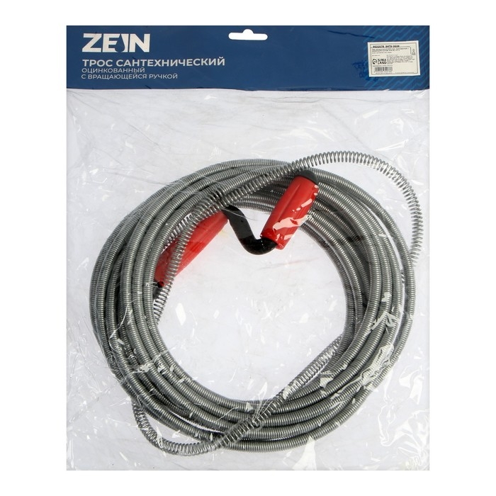 Трос сантехнический ZEIN engr, оцинкованный, с вращающейся ручкой, d=9 мм, L=7 м