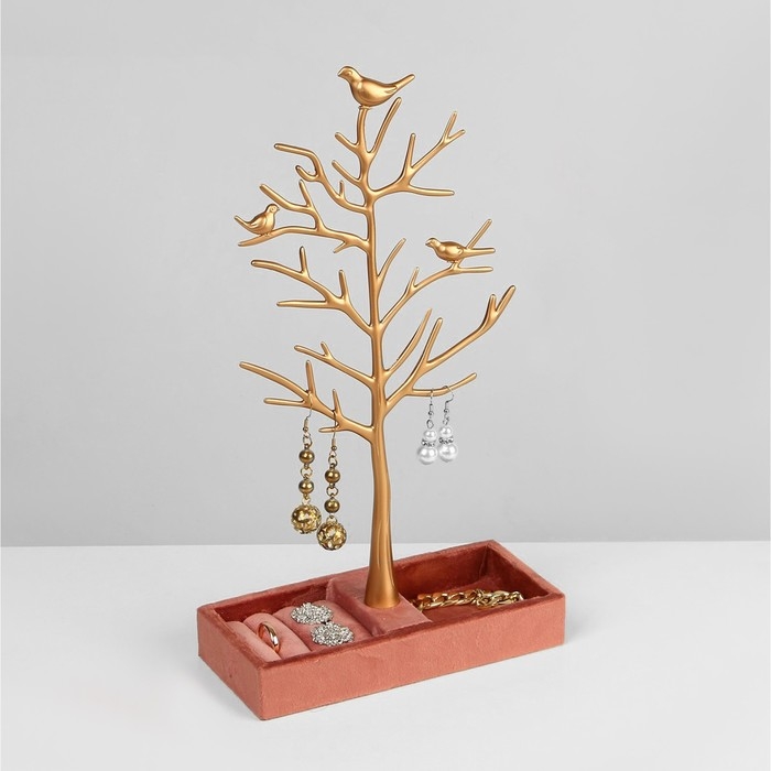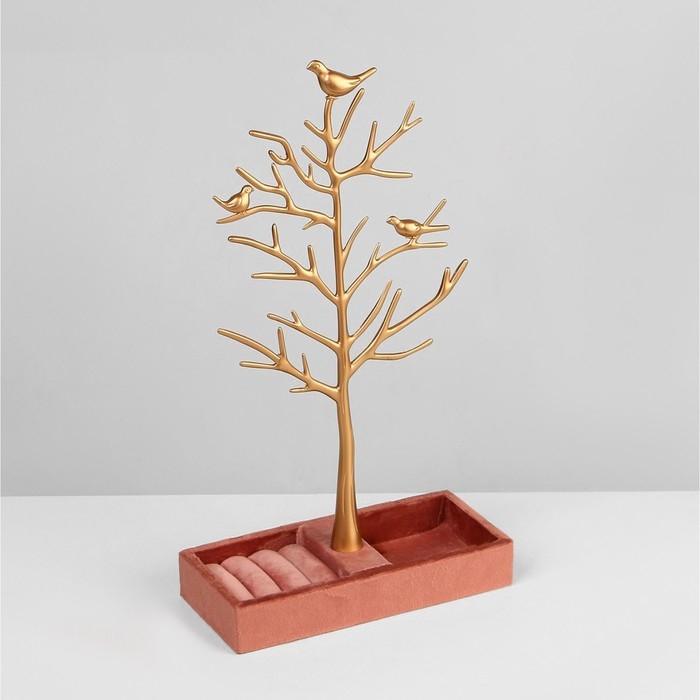 Если вы занимаетесь реализацией разнообразных украшений и аксессуаров, то вам нужно наглядно продемонстрировать свой товар, представив его в лучшем виде. Подставка «Дерево» с местом для хранения, 19×8×33 см, цвет розово-золотой как нельзя лучше справится с этой задачей! У каждого украшения появится своё место, откуда его можно будет хорошо рассмотреть.