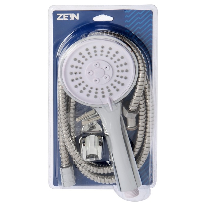 Набор для душа ZEIN Z3094, шланг 150 см, гайки металл, держатель, лейка 3 режима, хром