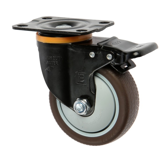 Колесо мебельное CAPPIO d=100,на площадке,со стопором,поворотное, покрытие TPR