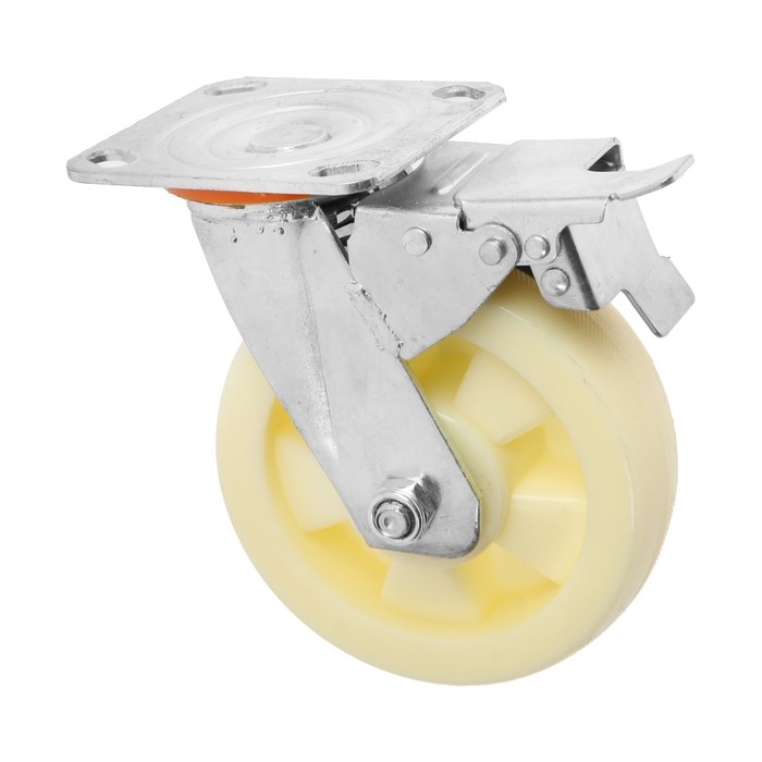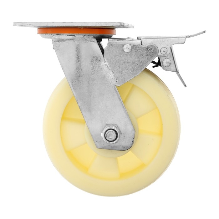 Колесо для транспортных тележек поворотное, d=150, на площадке, со стопором, покрытие PP