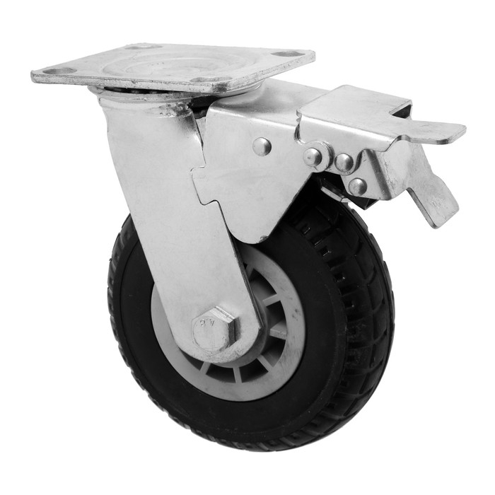 Колесо для транспортных тележек поворотное, d=150, на площадке, со стопором, покрытие резина 9917