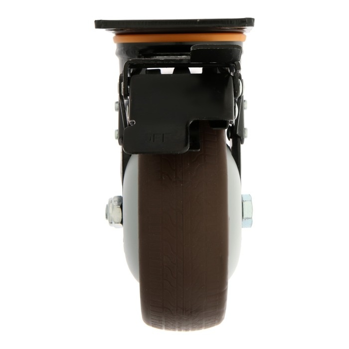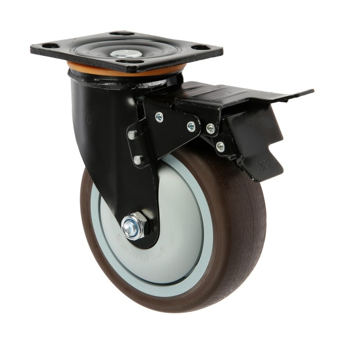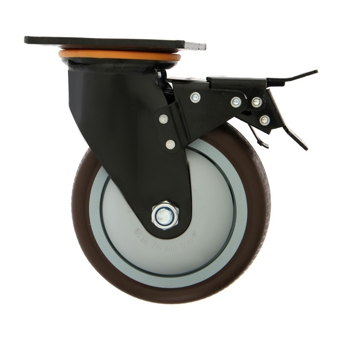 Колесо для трансп. тележек поворотное ТУНДРА, d=150 мм, на пдощадке, со стопорм, покрытие TPR 9917