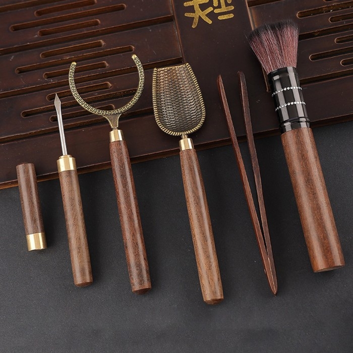 Набор включает в себя инструменты для проведения различных манипуляций во время чаепития или чайной церемонии.