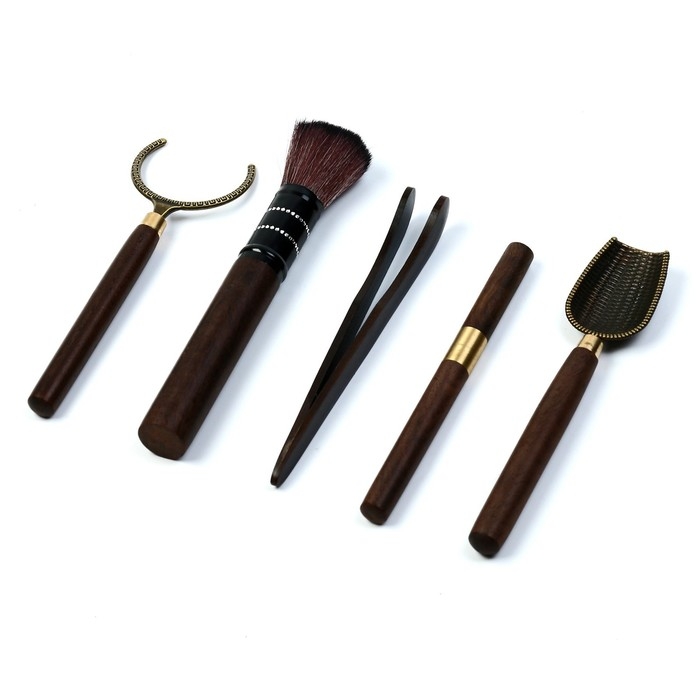 Набор инструментов для чайной церемонии: кисть, ухват, щипцы, нож, мерная лопатка