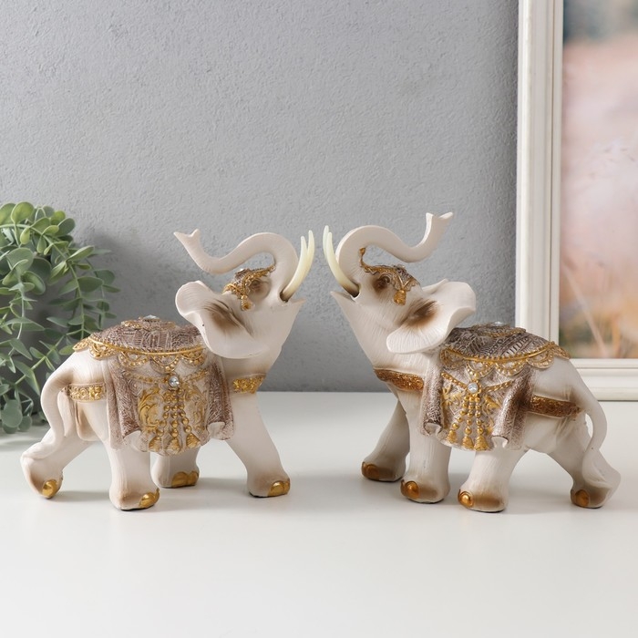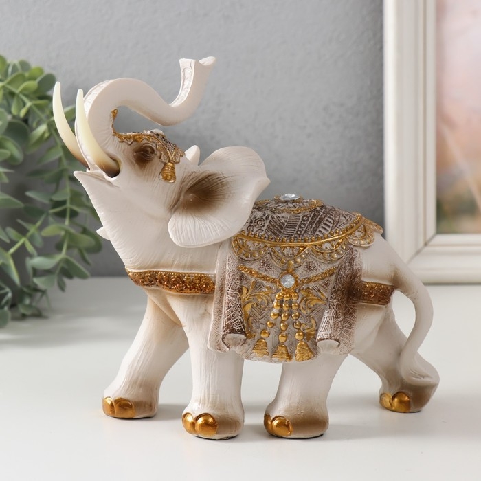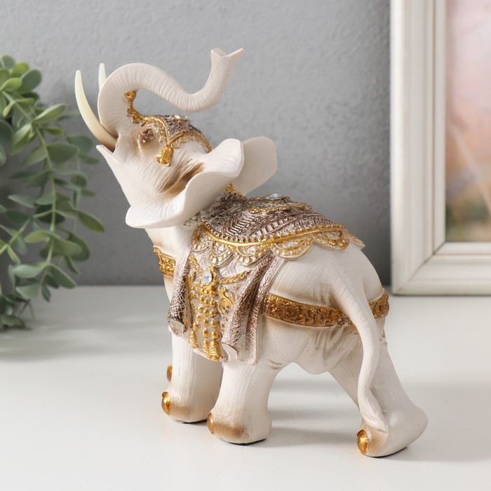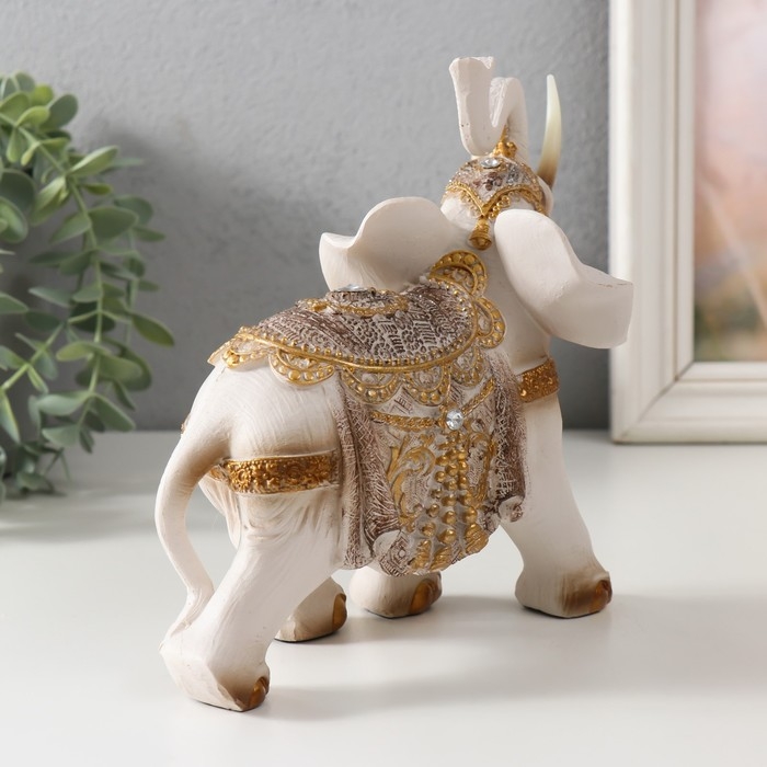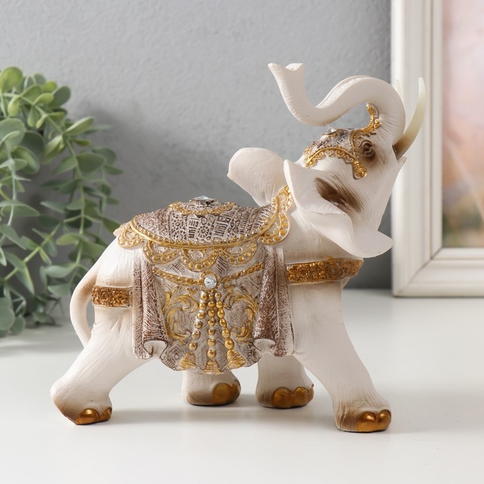 Сувенир полистоун "Белый слон в попоне с золотом" МИКС 16,5х8х17,5 см