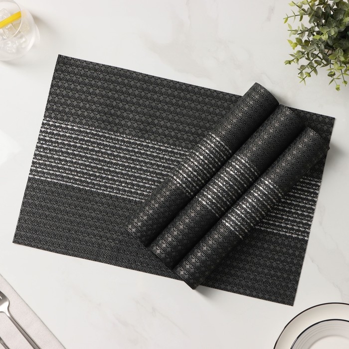 Салфетки сервировочные на стол Доляна «Сияние», 4 шт, 45×30 см, цвет чёрный